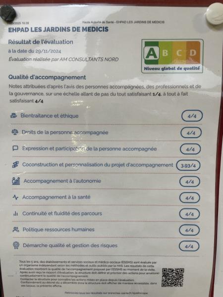 EN fin d'année 2024, la résidence Les Jardins Médicis de Milhaud a réalisé son évaluation externe conformément aux recommandations de la Haute Autorité de Santé